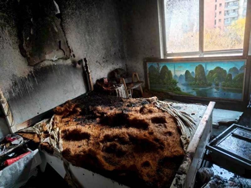 “当时就闻到刺鼻的焦糊味,楼道里还有烟。”据住在隔壁的邻居回忆,发现火情后便立即拨打了火警电话。由于户主不能及时返回家中,起火点位于卧室,消防救援人员破门进入后,采用水枪迅速控制火势,阻止了火灾的蔓延。